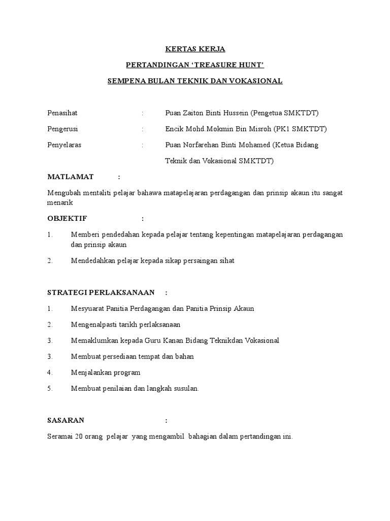 Kertas Kerja Program Treasure Hunt Pdf
